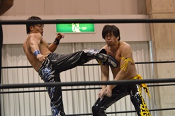 HARASHIMA前蹴り(右写真)、KUDOチョップ。