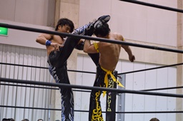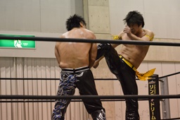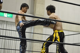 KUDOバックスピンキック、HARASHIMAブロック(右写真)。