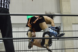 高梨がビクトル投げの要領でHARASHIMAを転がして坂口がPK(右写真)、高梨カバー、カウント2。