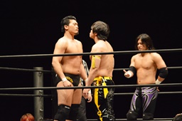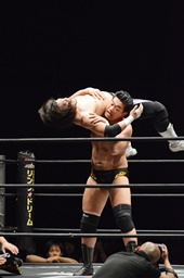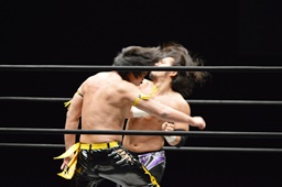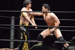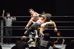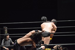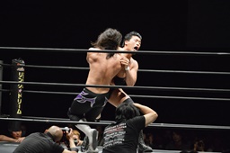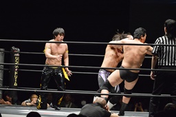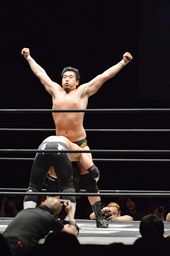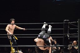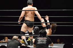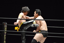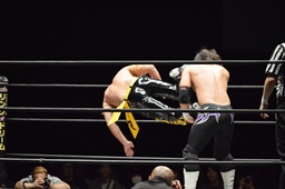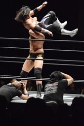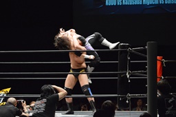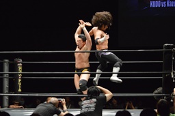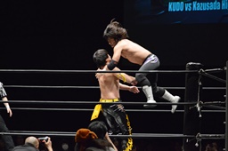 佐々木がKUDOを丸め込む(右写真)、カウント2。