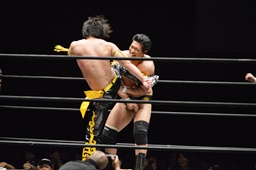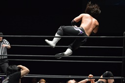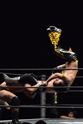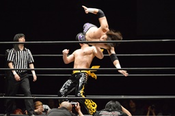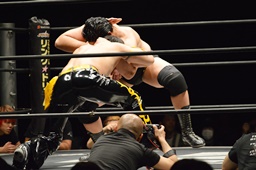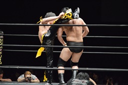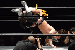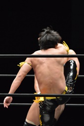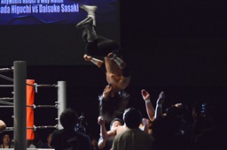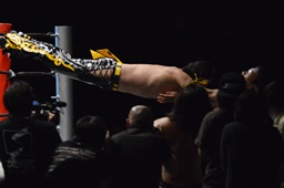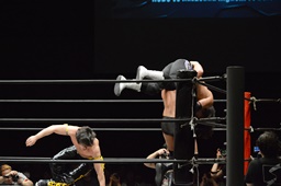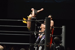 KUDO助走付けてトペ・スイシーダ(右写真)、佐々木かわす。