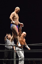 新崎(11分17秒 極楽固め)男色