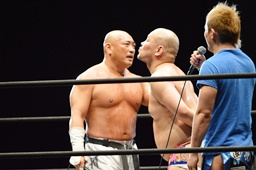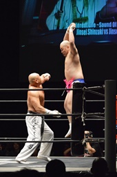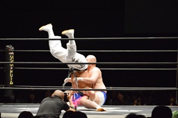 新崎大石に地獄突き(右写真)、逆に大石が男色のケツに。