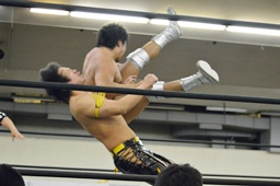 ロックアップ(右写真)、KUDOヘッドロック、宮武ロープに振る、