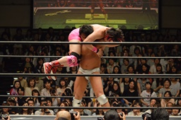 その勢いで佐々木が高尾をエビ固めに(右写真)、カウント2。
