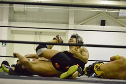ダブルロープワークから高梨がショルダーネックブリーカー(右写真)、