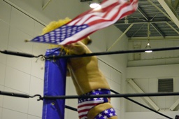 星条旗を振り回す(左写真)。