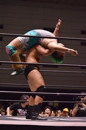 大車輪ノド輪落とし(右写真)、カウント2。