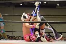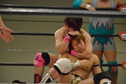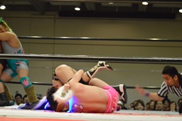 ボディスラムからテディベア(左写真)、カウント2。