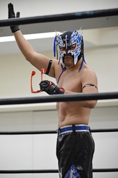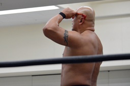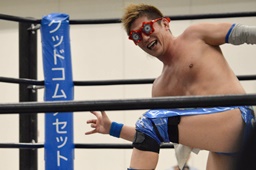 リングに1人放置された相島はHIRATA!GO!メガネを装着(右写真)。