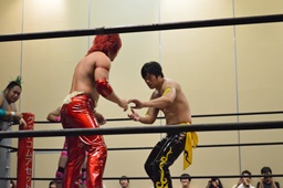 坂口がリングに戻りはGMに「GM、これじゃあ、兄貴の待っている両国のテッペン、俺が対面に立つ資格がないです。あいつと白黒ハッキリさせるため、サシでやらせてください。じゃないと俺は両国のテッペンに上がる資格はない。辞退します。」(右写真)