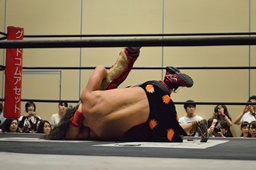 高尾トラースキック、みちのくドライバー(左写真)、KUDOがカット。