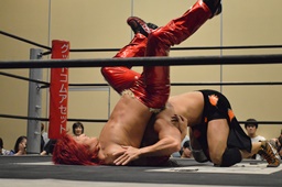 高梨首固め(右写真)、カウント2。