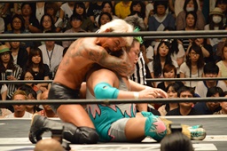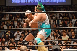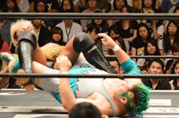 入江ボディスラムからテディベア、坂口かわす(右写真)。