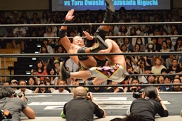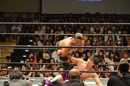 樋口チョップ(左写真)、ボディスラム