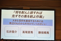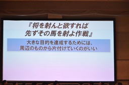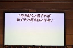 「将を射んと欲すれば先ずその馬を射よ作戦」(左写真)。「将を射んと欲すれば先ずその馬を射よ」とは「大きな目的を達成するためには、周辺のものから片付けていくのがいい」という意味。