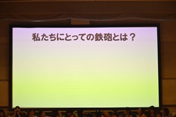 できあがった煽りパワポを試合中に披露(右写真)。