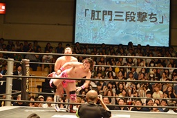 ササダンゴ高尾に垂直落下式リーマンショック(右写真)、しかしこれもカウント2。
