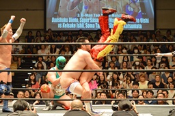 ディーノと大石がラフレシアの花の体勢に(左写真)。