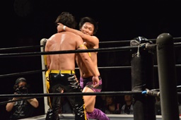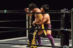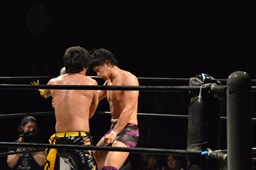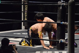 ロープに飛ぶ、KUDO追走してキチンシンク(右写真)、梅田場外エスケープ。