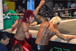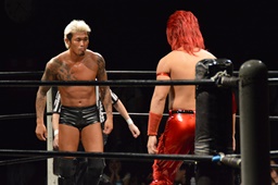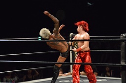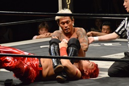 フライングメイヤー(右写真)、坂口ヘッドシザーズでブレーク。