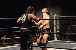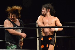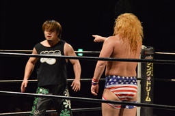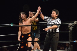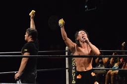 高梨勝ち名乗りを受ける(右写真)。両国国技館大会のDDT EXTREME級選手権で王者・アントーニオ本多に挑戦するのはマサ高梨に決定。