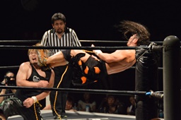 ウラノが福田をジャックナイフ(右写真)、カウント1。