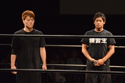 昼のDNAで8/23両国デビューが発表された渡瀬瑞基と井上麻生がリングに(右写真)。