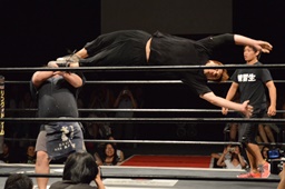 井上ドロップキック(左写真)。