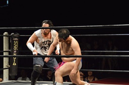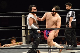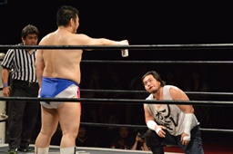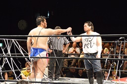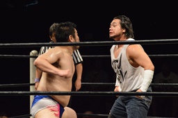 ディーノ「亜門さん、DDTの両国大会でワタシとササダンゴと大家健と組んでベルトに挑戦させろって言って、あんたが来るかどうかわかんなかったけど、ひとまず来てくれてありがとう。まだ認める気ないですか?」