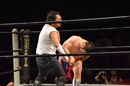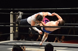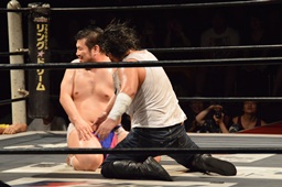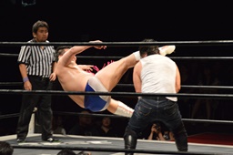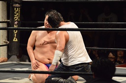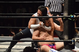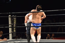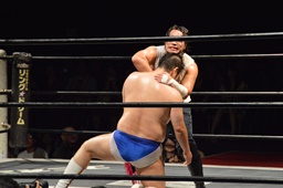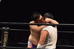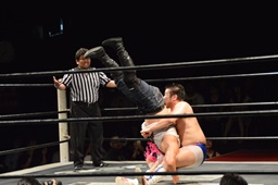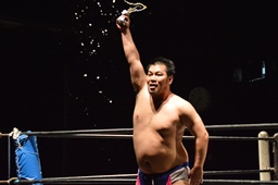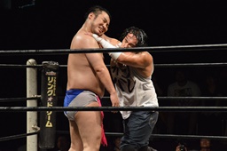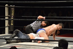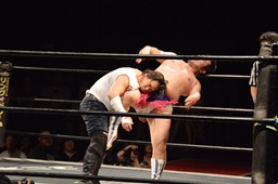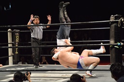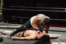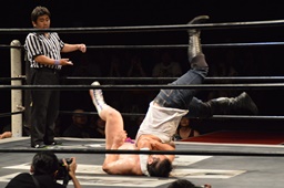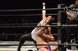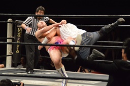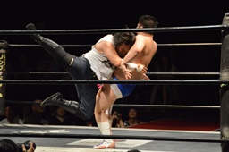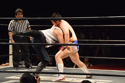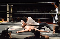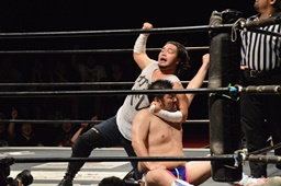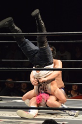 漢固め(右写真)でカウント3。