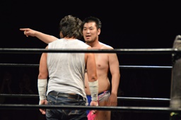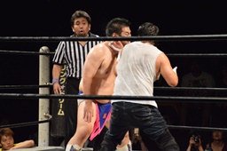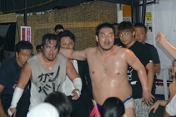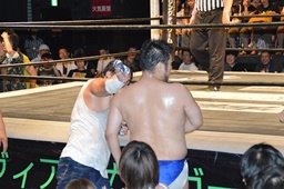 GM「ディーノ、大家。いや、大家さん。いい試合だったよ。大家さんがKO-D6人タッグに挑戦するにふさわしい選手だとよくわかった。8月23日両国大会、ディーノ&ササダンゴ&大家組でKO-D6人タッグに・・・」