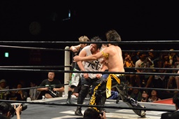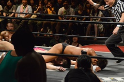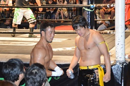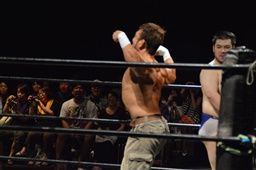 KUDO大家にヒザ、ヒジ(左写真)。5分経過。