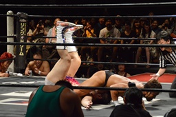 股間を押し付けてカバー(左写真)、カウント2。