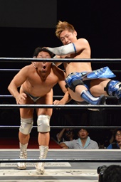 大石が後ろから飛びついてフェースクラッシャー(左写真)。