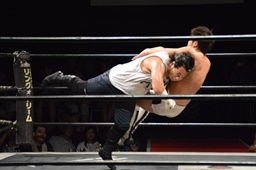 大家が石井に垂直落下式ブレーンバスター、ササダンゴも高尾に垂直落下式リーマンショック(左写真)