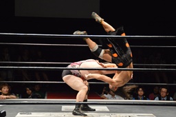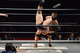 高梨レッグラリアット(左写真)、タカタニックはアントンブロック、スコーピオンデスドロップの体勢、
