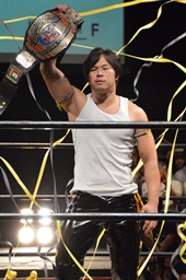最後に王者・KUDO入場(左写真)。