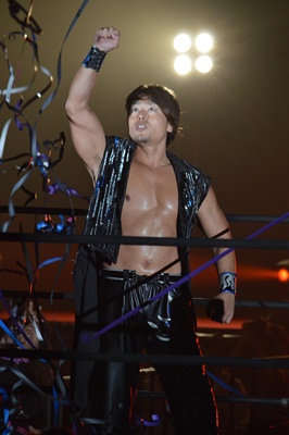 新日本では紙テープ禁止なので、DDT出場時にしか味わえない紙テープを去年に続き再び浴びる(左写真)。