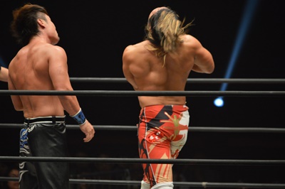 HARASHIMA握手を求めるが棚橋はスカす(右写真)。