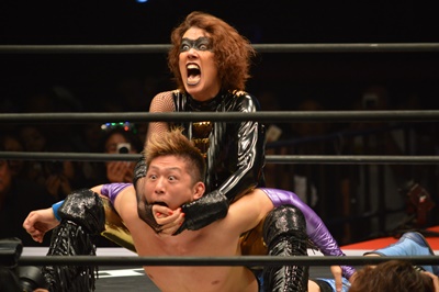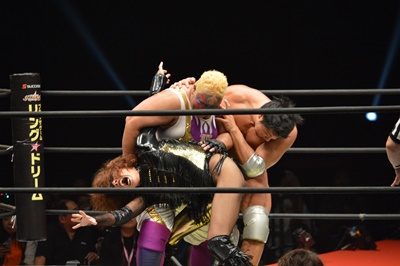 大石がLiLiCoにブレーンバスター狙うがLiLiCo切り返す(左写真)、宮武にタッチ。