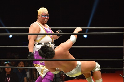 アジャ宮武にエルボー(右写真)、大石にタッチ。