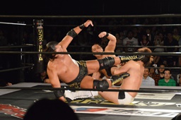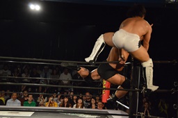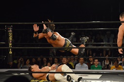伊橋ムーンサルトプレス、高木かわす(右写真)。