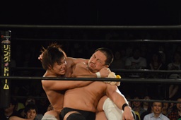 高木ドラゴンリングイン、岩崎ガットショットで迎撃(右写真)。