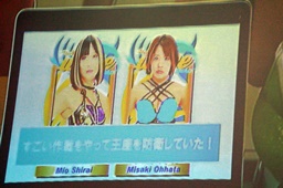 昼に行われたWAVEで紫雷美央と大畠美咲がすごい作戦を使ってタッグ王座を防衛していた、と(左写真)。
