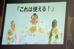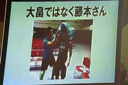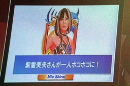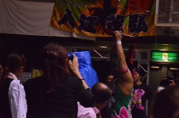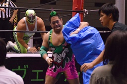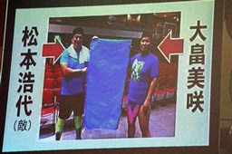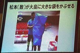 松本(敵)が大畠に大きな袋をかぶせる(右写真)。大畠は会場外に連れ出される。