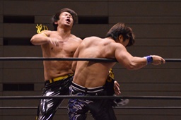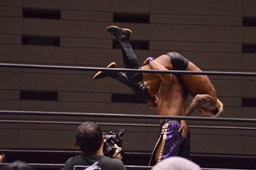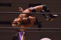 KUDOがHARASHIMAにトペ・スイシーダ(左写真)。