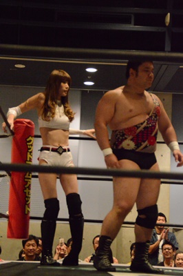 飯伏欠場の穴埋めで急遽呼ばれた赤井沙希とアントンのコンビ(左写真)。スケジュール空いてたからできた話だが、赤井のDDT愛あっての話。