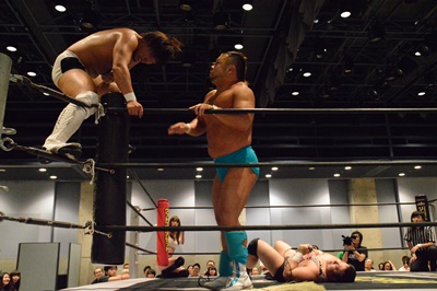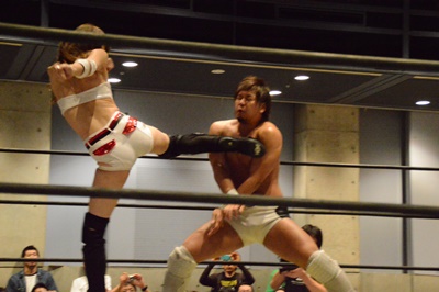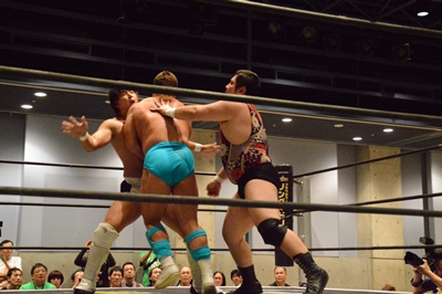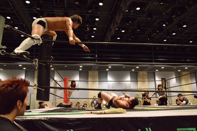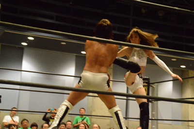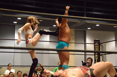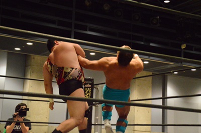 アントン岩崎にニースタンプ(右写真)、カウント2。
