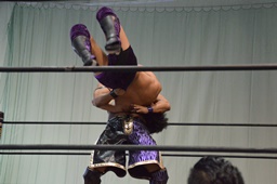 持ち上げて変形みちのくドライバー狙う(左写真)、
